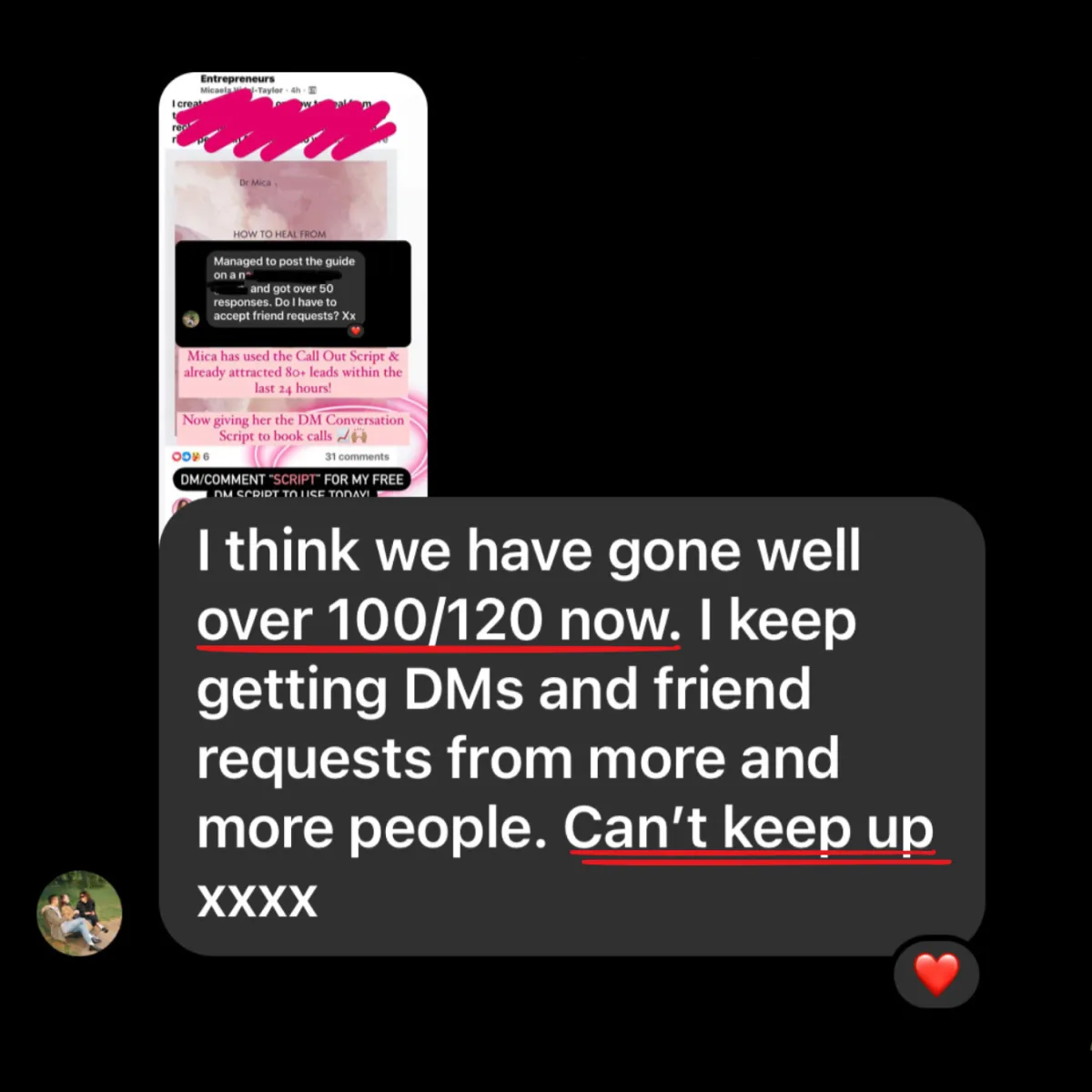 If you implement the strategies taught within the community over the next 30 days and don’t start generating leads, I’ll invite you to a bonus private Zoom call where I’ll personally review your process and guide you on what to fix...